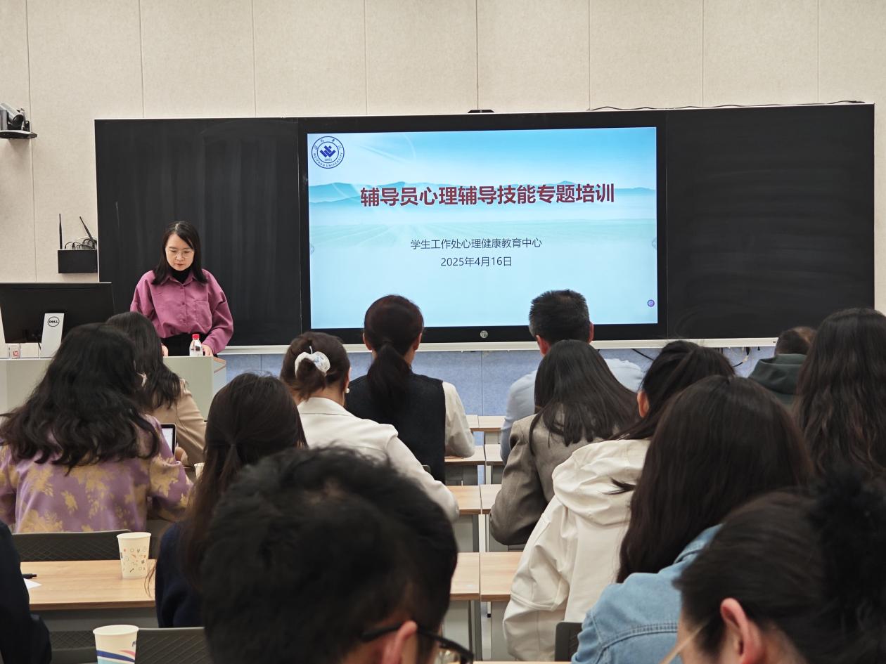 4月16日下午,辅导员心理辅导技能专题培训在人合楼8119智慧教室举行,由学生工作处主办、数学与统计学院承办,潍坊市精神卫生中心孟亮亮主任担任主讲嘉宾,围绕《常见精神疾病的预防与治疗》展开讲解。