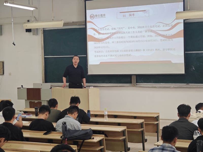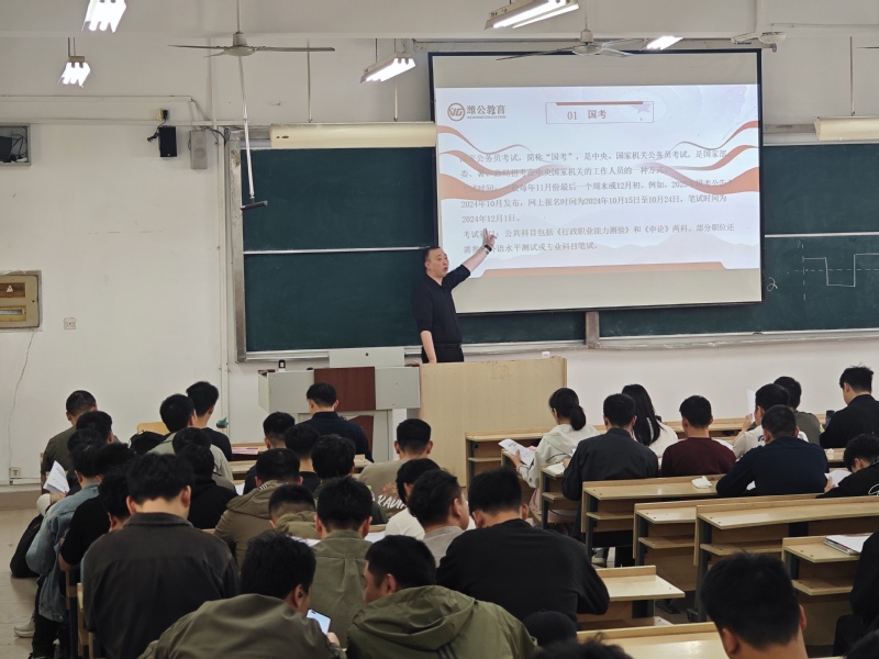 随后,考公专家进行专业指导。专家凭借多年丰富的辅导经验,深入剖析了当下公务员考试的竞争态势,针对同学们在备考中遇到的时间分配、资料选择、复习重点等问题,一一给予专业解答,并给出科学合理的复习规划。专家结合历年真题,对行测和申论的各类题型进行深度解析,让同学们对考试内容有了更透彻的理解。