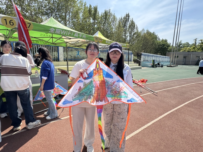 潍坊作为“世界风筝之都”,潍坊风筝更是山东潍坊的传统手工艺珍品,也是民间传统节日文化习俗,被列入第一批国家级非物质文化遗产名录。本次活动分为了两个阶段,各院代表领取了风筝材料包之后,在各院指定区域体验风筝的扎制与绘画。潍坊风筝的制作工艺精妙绝伦,扎制方法虽看似简单,但要确保竹条均匀、骨架周正、左右对称等,不是一件容易的事情,每一个细节都蕴含着深厚的智慧与技艺。自己动手扎制不仅让同学们在制作过程中释放了压力,还增进了同学之间的友谊与团队合作精神。制作完毕后,在老师为同学们讲解放风筝的技巧和注意事项后,奔跑、放线、抬头,一时间,操场上满是同学们欢快的身影。风筝越飞越高,在湛蓝天空的映衬下,构成了一幅美丽的春日画卷。现场气氛热烈,欢呼声、笑声此起彼伏,大家相互协作、交流经验,共同享受这美好的时光。