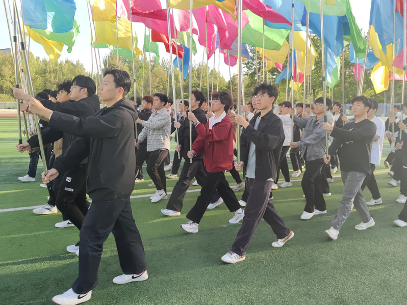 与此同时,拉拉队、方队和彩旗队的训练也在如火如荼地进行。拉拉队员身着统一队服,动作刚柔并济,每一次舞动都凝聚着团队的默契;方队、彩旗队成员步伐铿锵有力,反复打磨队形变换与队列协调性,整齐划一的行进间,既展现青春风采,也传承着独特的校园文化。