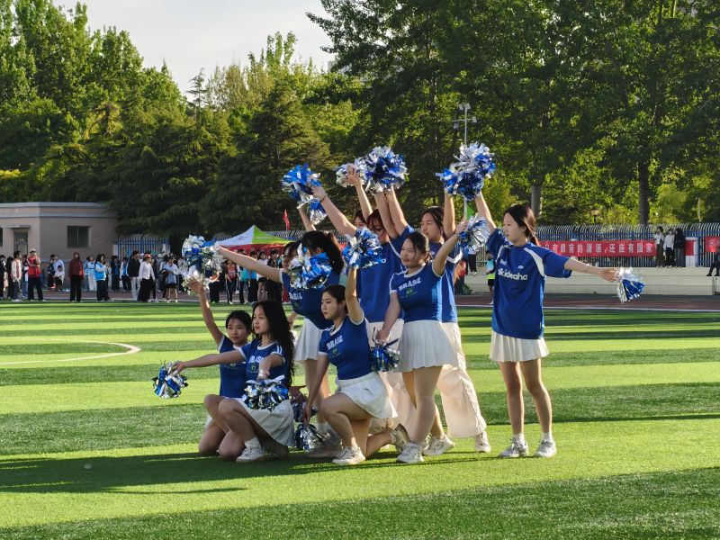 2025年4月24日潍坊学院运动会盛大开幕。赛场上不仅有运动员的拼搏,还有一支鼓舞士气的队伍——啦啦操。生物与海洋学院啦啦操队员们身着鲜艳的啦啦操服,脸上洋溢着自信的笑容,为即将到来的比赛热身。