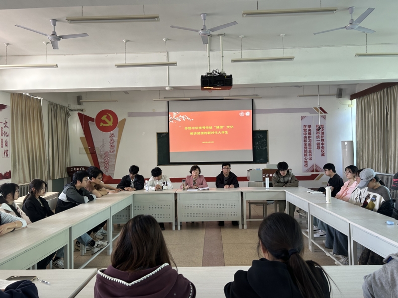 课上,于恬以“诚信”为核心主题,从中华优秀传统文化的角度切入,引经据典,向同学们讲述了 “一诺千金”“季布无二诺”等历史典故,生动阐释了“诚信”作为中华民族传统美德的深厚内涵与重要价值。她指出,诚信不仅是个人安身立命的根本,更是社会和谐稳定、国家繁荣发展的基石,并提出一下几点要求:一要做到言行一致。大学生应该时刻注意自己的言行,树立正确的价值观和道德观念。二要遵守学术诚信。学术诚信是大学生必须遵守的重要原则之一。在学术研究中要尊重他人的成果,不抄袭、不剽窃他人的成果。三要维护网络诚信。在网络上要遵守法律法规和道德规范,不传播谣言、不散布虚假信息。