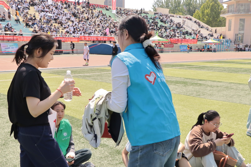 赛场之上,志愿者们的服务贯穿始终。他们维持观众席秩序,引导经管学院师生文明观赛,保障比赛流畅进行;在终点线旁,他们为冲刺后的运动员递上毛巾、送上温水,用细微关怀缓解选手的疲惫,用温暖传递校园温情。