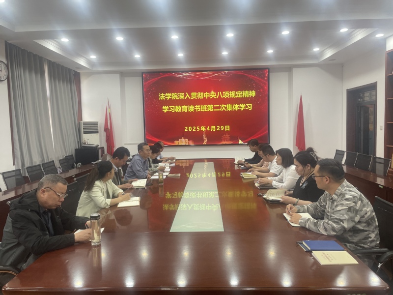 4月29日,法学院在8314会议室举办深入贯彻中央八项规定精神学习教育读书班第二次集体学习。学院党委书记刘德才主持并讲话。
