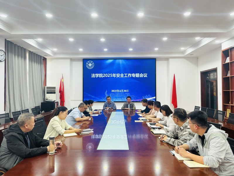 为贯彻落实上级有关安全稳定工作的会议精神,4月 30 日上午,法学院在8314会议室召开2025年安全工作专题会议,安排部署学院安全工作。学院党委书记刘德才,党委副书记、院长杜立聪,党委副书记王秀慧及各科室负责人参加会议。