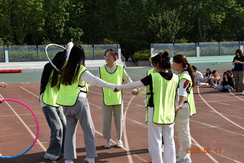 每支队伍派出6名队员手拉手组成“人体传送带”,完成6个呼啦圈传递;一些队伍即使出现意外“卡圈”,仍以优雅姿态完成比赛,诠释“文体兼修”的学院风范。