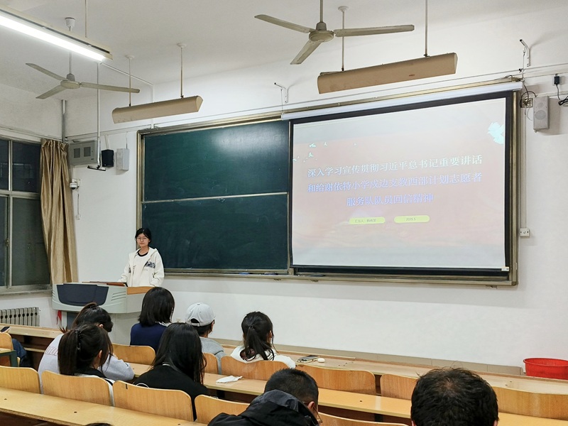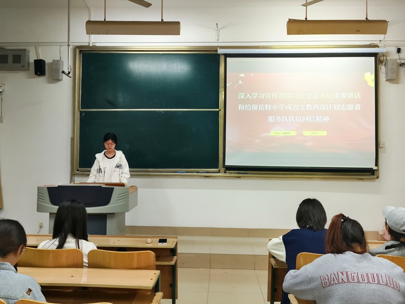 此外,杨雨菲同学还聚焦习近平总书记给谢依特小学戍边支教西部计划志愿者服务队队员的回信内容,介绍了谢依特小学的特殊地理位置以及服务队队员们响应号召、扎根西部边疆教书育人的感人事迹。通过图片和视频,大家仿佛亲眼目睹了志愿者们在艰苦环境中坚守岗位、无私奉献的身影。
