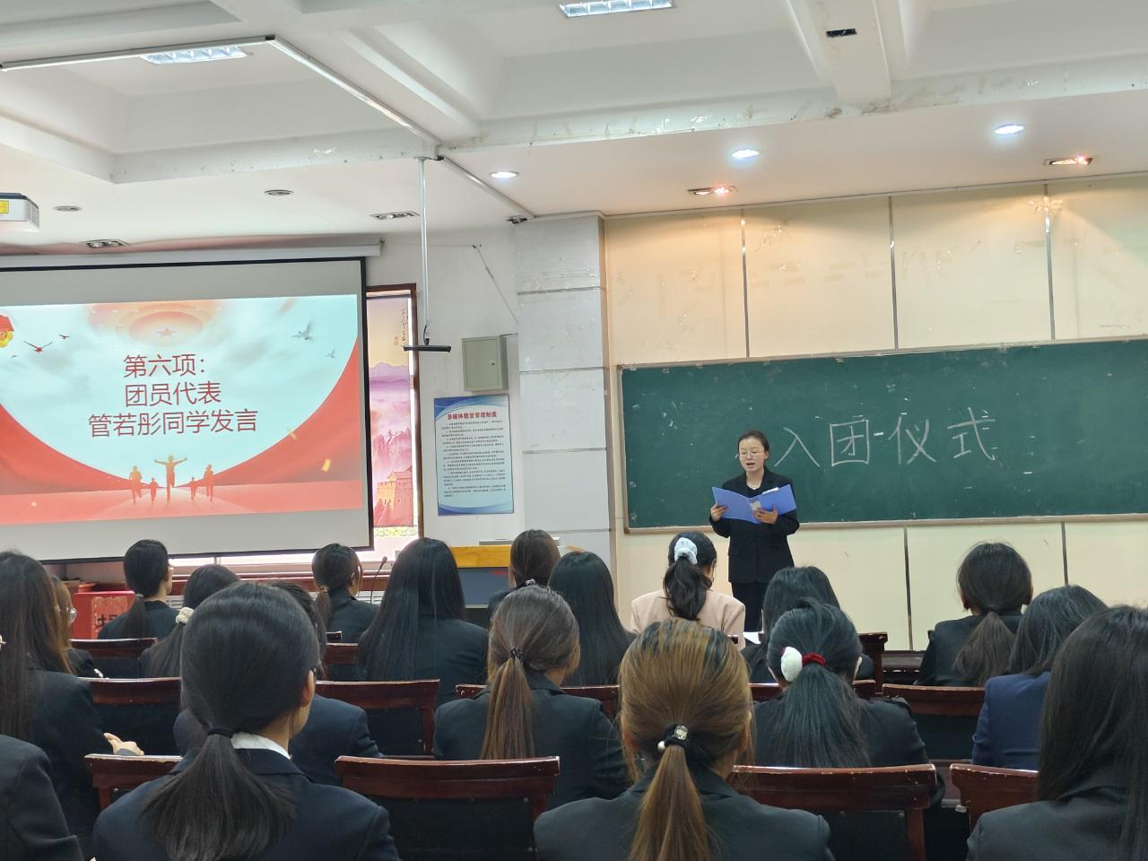 老团员代表管若彤同学分享了自己入团以来的成长与感悟,鼓励新团员们珍惜团员身份,在奋斗中释放青春激情,追逐青春理想。