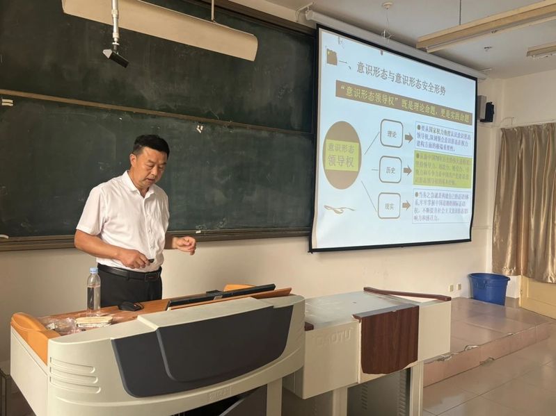 活动伊始,孙创业表明老干处与体育学院携手开展党课学习既是新老思想的交融碰撞,更是强化意识形态安全责任的生动实践。随后,吕学山结合体育领域意识形态工作特点,深入剖析当前意识形态安全面临的机遇与挑战。他强调体育不仅是竞技比拼,更是文化交流与价值观传播的重要载体,体育学院师生要在日常生活和工作中主动弘扬中华体育精神,以专业优势讲好中国故事。最后吕学山通过典型案例分析,引导并呼吁大家在学习和生活中自觉承担起责任,传承体育文化。