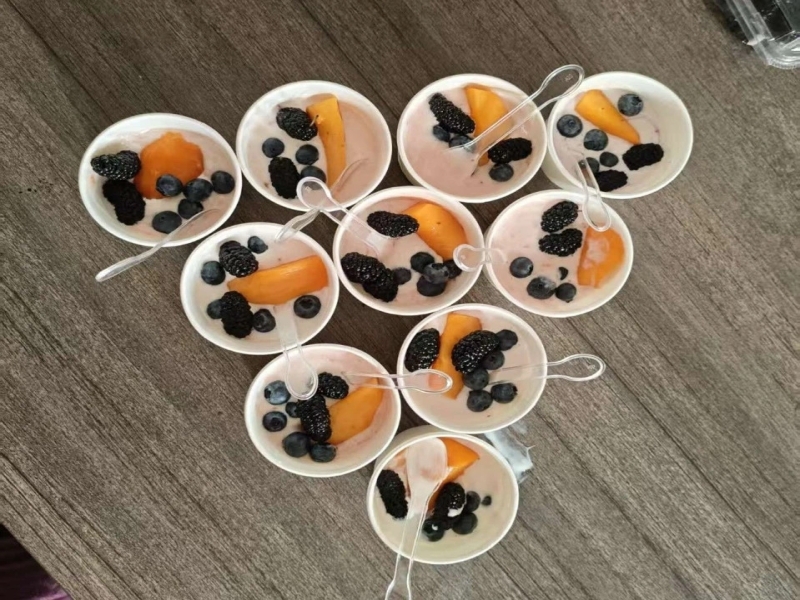 在DIY环节,大家根据自身情绪状态搭配专属酸奶杯:焦虑的同学选择富含镁的香蕉和黑巧克力,疲惫的伙伴添加活力满满的草莓和坚果,平静愉悦的则用蓝莓和蜂蜜点缀。