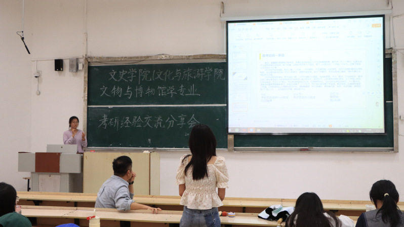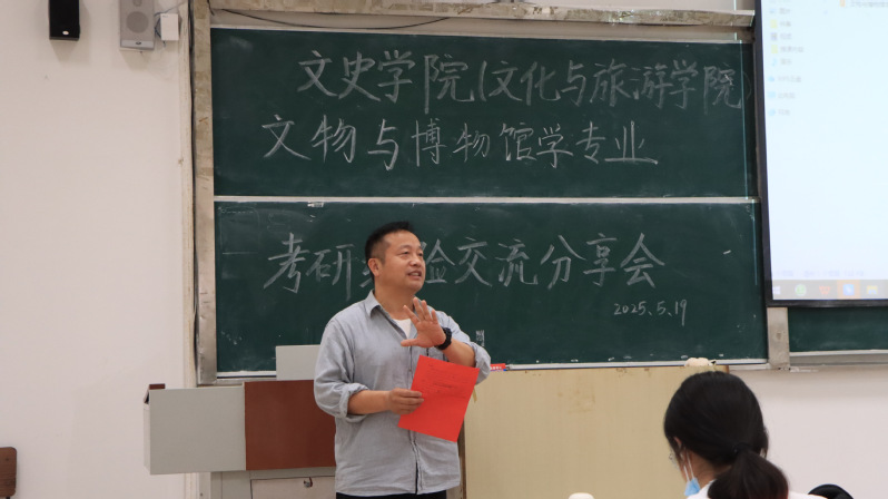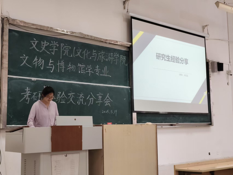 为帮助文博学生明确考研目标、科学规划备考,5月19日,文史学院(文化与旅游学院)在6101教室举办文物与博物馆学专业考研经验分享会。2025届优秀考研学子王晓晓、宋玉玉、吕东娜受邀分享经验,2022级文物与博物馆学专业辅导员王国栋及全体学生参会。