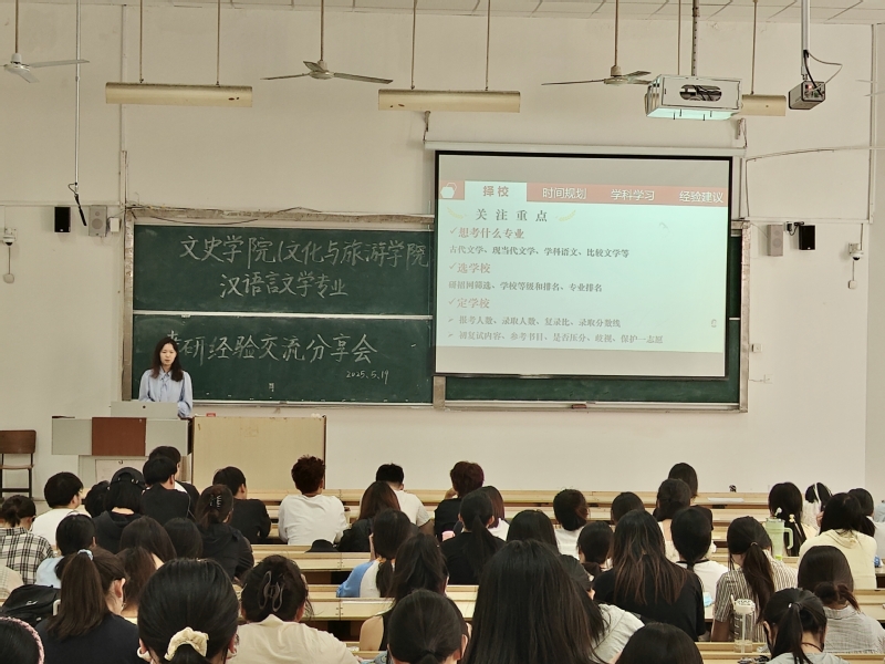 为激发学生考研热情、营造笃学奋进的学术氛围,5月20日至21日,文史学院(文化与旅游学院)成功举办考研经验交流分享会。活动采取线上线下相结合的形式,覆盖汉语言文学、文物与博物馆学、旅游管理、历史学四个专业,十位优秀考研学子倾情分享。学院通过搭建朋辈互助平台,以榜样力量引导学生明确目标、科学规划,为升学之路注入信心与动力。