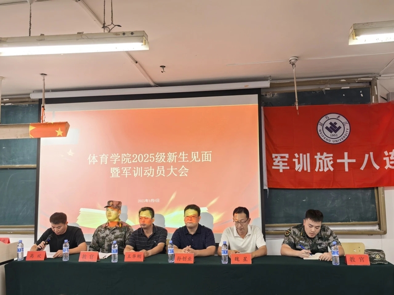 为有效实现军训价值与意义,提升学生体能,锻造学生顽强精神。体育学院于9月8日举行2025级新生军训动员大会。体育学院党委书记孙创业、党委副书记、副院长魏星、副院长王华刚、军训教官和2025级全体新生参加会议。会议由体育学院学工办主任高欢主持。