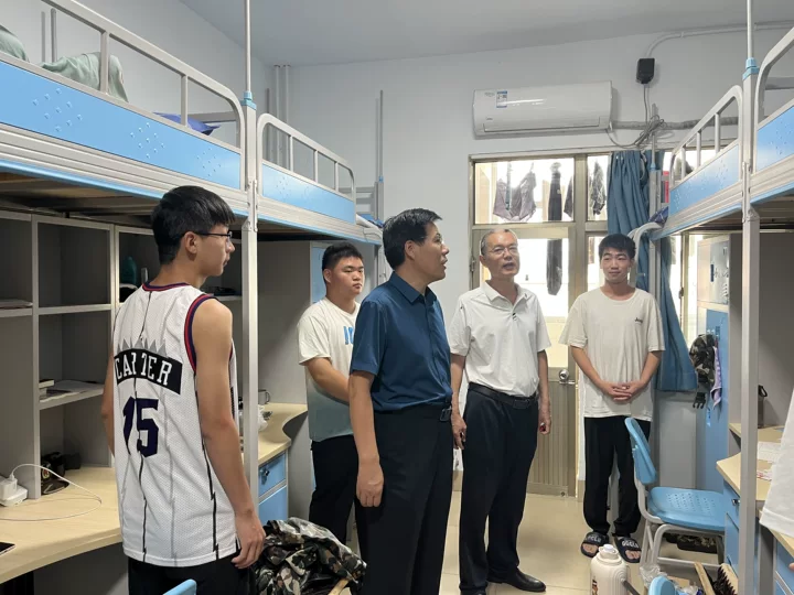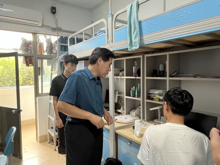 走访过程中,领导老师深入学生宿舍、教室和食堂,与新生们亲切交谈。在宿舍里,张付功仔细询问同学们的住宿条件是否满意,生活上有没有困难,并叮嘱大家要相互关心、相互帮助,共同营造良好的宿舍氛围。他还特别强调了宿舍安全的重要性,提醒同学们注意用电安全,遵守宿舍管理规定。同时针对同学们提出的问题,领导老师一一进行了耐心解答。张付功表示,学院始终将学生的全面发展放在首位,对于同学们提出的意见和建议,学院会认真梳理并研究解决方案,努力为大家创造更好的学习和生活条件。