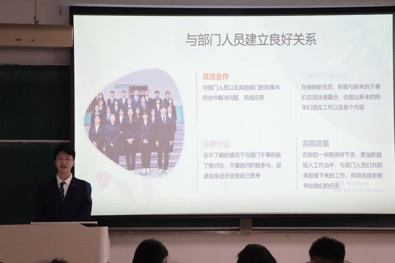 选举开始,主持人向到场人员介绍了本次换届选举的目的及核心流程,强调选举将严格遵循“公平、公正、公开”原则。竞选演讲环节中,各位候选人结合自身团学工作实践感悟,从“自我介绍、工作经历、预期目标”三方面,在短时间内简易阐述对竞选目标相关的工作经历与对所竞选部门职能的理解,充分展现出饱满的工作热情与清晰的逻辑思维能力,赢得现场评委的认可。