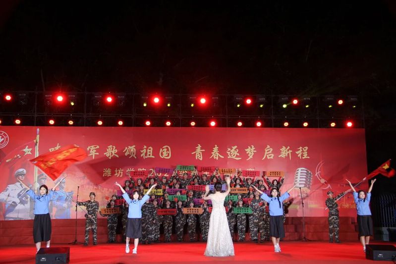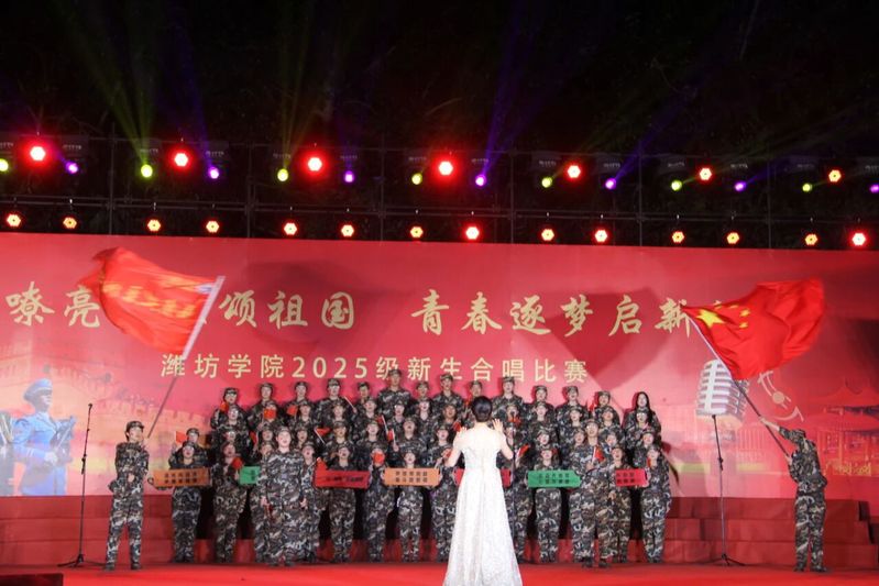 9月24日,潍坊学院“嘹亮军歌颂祖国,青春逐梦启新程”2025级新生军训合唱比赛在学校体育场举行。马克思主义学院2025级新生积极参赛。