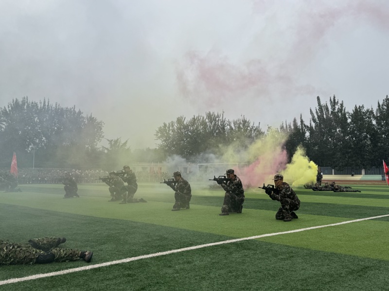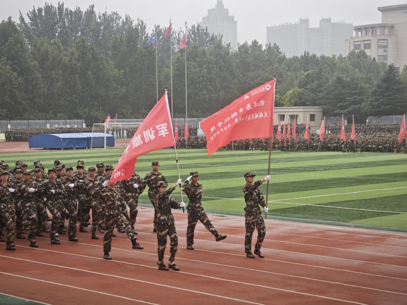 汇演在庄严的升国旗仪式中拉开帷幕。伴随着雄壮的《义勇军进行曲》,五星红旗冉冉升起,全体师生肃立行注目礼,激昂的爱国情怀在现场回荡。随后,军训成果展示正式开始,2025级新生以连队为单位,迈着整齐的步伐依次通过主席台。他们身姿挺拔、口号嘹亮,齐步稳健、正步铿锵,展现出机械学子严谨务实的精神风貌与蓬勃朝气。队列变换环节中,同学们动作协调一致,从方阵到纵队的转换流畅有序,充分体现了三周军训所锤炼出的纪律意识与团队协作能力。