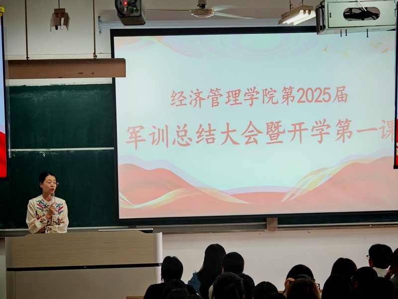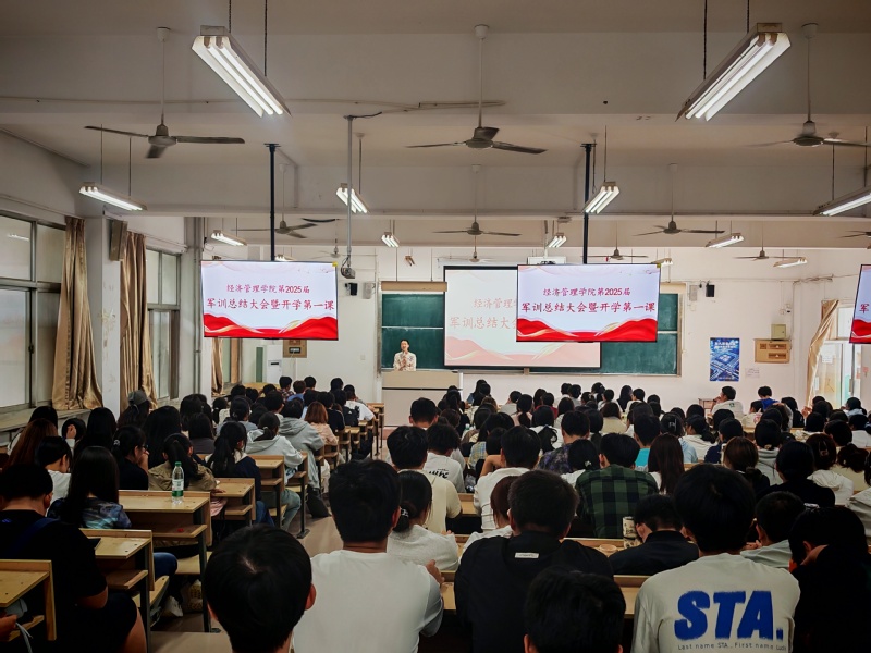 秋风送爽,丹桂飘香。为总结过往,展望未来,9月28日,潍坊学院经济管理学院分别于致远楼401、412教室举办了军训总结大会暨开学第一课。本次活动由新生辅导员焦祥嘉主讲,2025级全体经管学子参与此次活动。