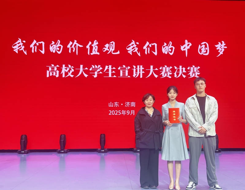 9月27日,由山东省委宣传部、省教育厅(省委教育工委)联合主办的“我们的价值观 我们的中国梦”高校大学生宣讲大赛决赛在山东师范大学落下帷幕。我校美术学院2023级学子张玥凭借宣讲作品《用画笔点亮乡村,让青春绽放芳华》荣获优秀奖,这也是我校在该项赛事中取得的历史最佳成绩,充分展现了我校学子在思想引领与实践育人方面的扎实成效。