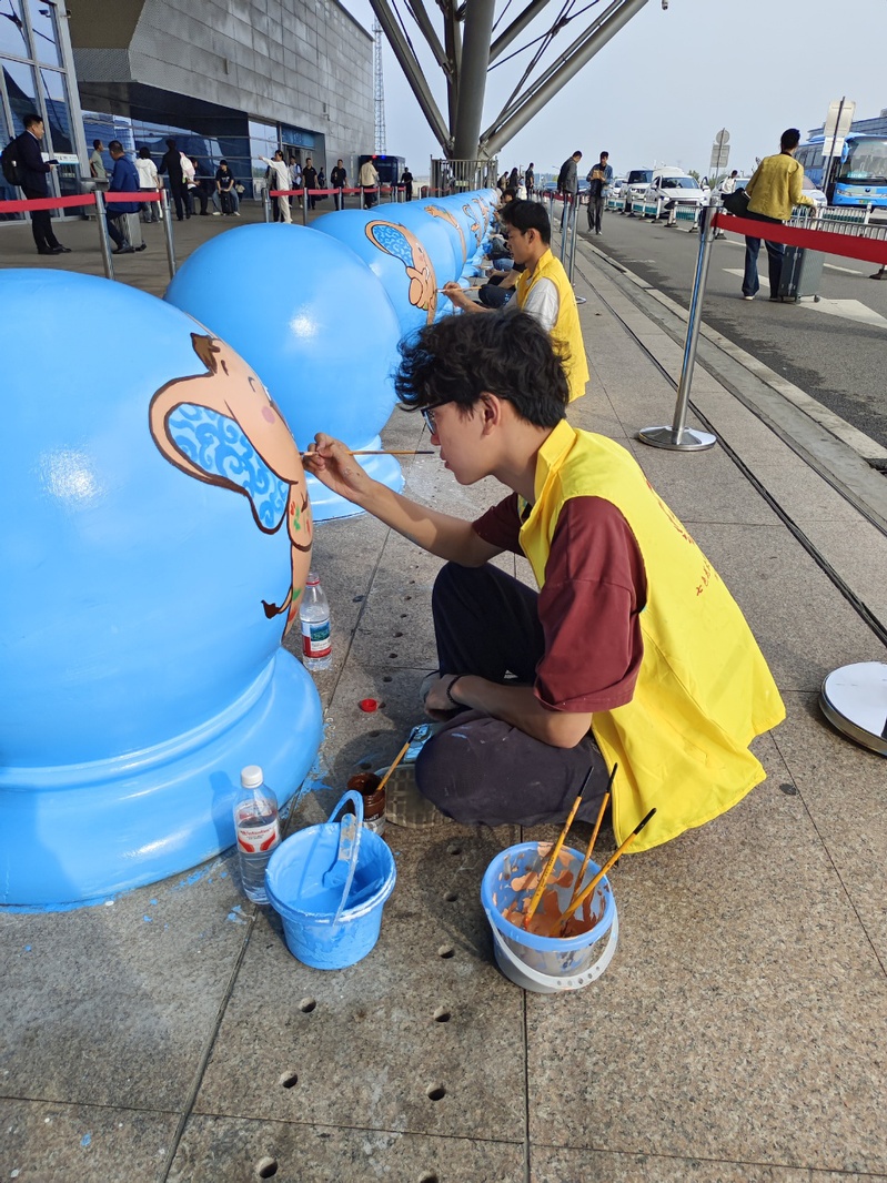 10月9日,由潍坊市交通运输局牵头组织,潍坊学院美术学院“七色花”大学生志愿者服务队与“尽美社”共同参与的潍坊站及潍坊北站石墩彩绘活动顺利圆满完成。此次活动以“潍坊象祥祥”为主题,对两站进出站口及广场区域的50余个石墩进行了艺术彩绘,旨在通过青年学生的专业特长美化城市窗口,展现潍坊深厚的文化底蕴。