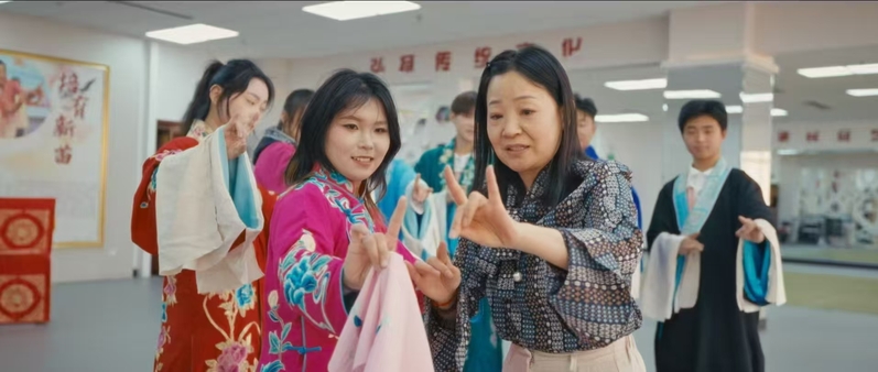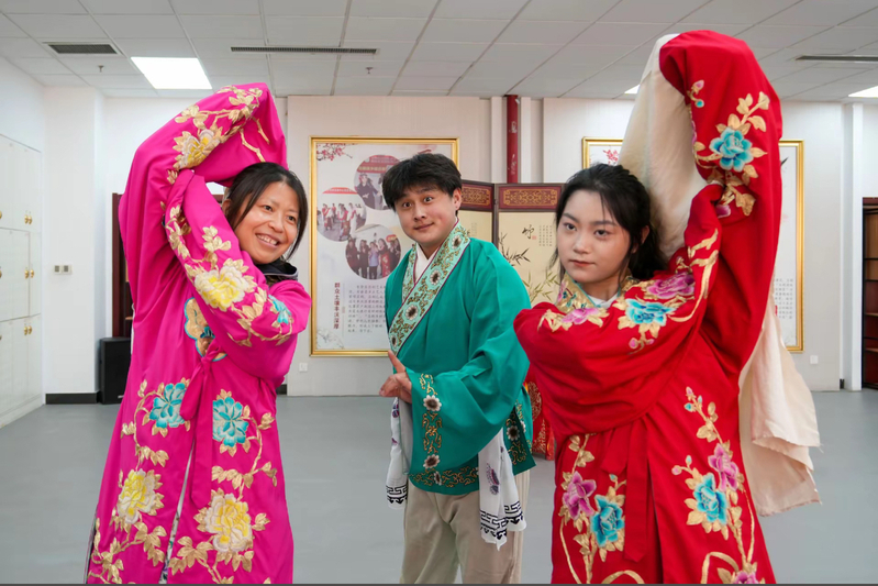 活动现场,吕剧传承人学习水袖动作——玫粉色戏服上的牡丹绣纹随动作舒展,青绿小生扮相的男生摆出经典身段,一旁举着手机记录的学生笑眼弯弯。随后,传承人为学生讲解剧种的历史,作为国家级非物质文化遗产,吕剧近年来在传承中探索创新:一方面,邀请国家级传承人开展“师徒结对”,已培养20余名青年演员;另一方面,将现代题材融入剧本创作,并用短视频平台发布《李二嫂改嫁》片段,相关话题播放量突破500万。