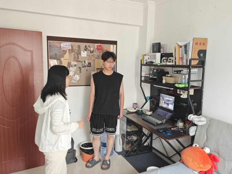 正午阳光透过楼道窗户,映照着老师们检查安全的身影。在学生租住的公寓里,他们俯身查看插座是否过载,又查看燃气管道安全性,确认消防通道是否畅通。“这个插排的绝缘层有破损,必须立即更换。” 辅导员王芳老师边说边演示正确用电规范。检查间隙,老师们还细心记下学生桌上的常用药品,“小孙上次说胃不舒服,下次走访得记得带盒胃药。”