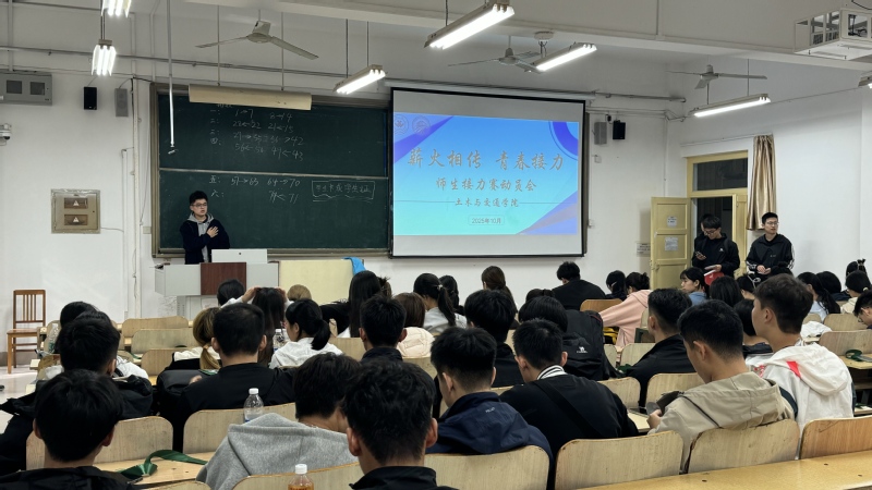 10月16日,“薪火相传,青春接力”师生接力赛开赛在即,为确保赛事顺利推进、凝聚团队力量,土木与交通学院于6103教室召开赛前动员大会。学生工作办公室主任马俊原主持会议,全体参赛师生、赛事志愿者参与。