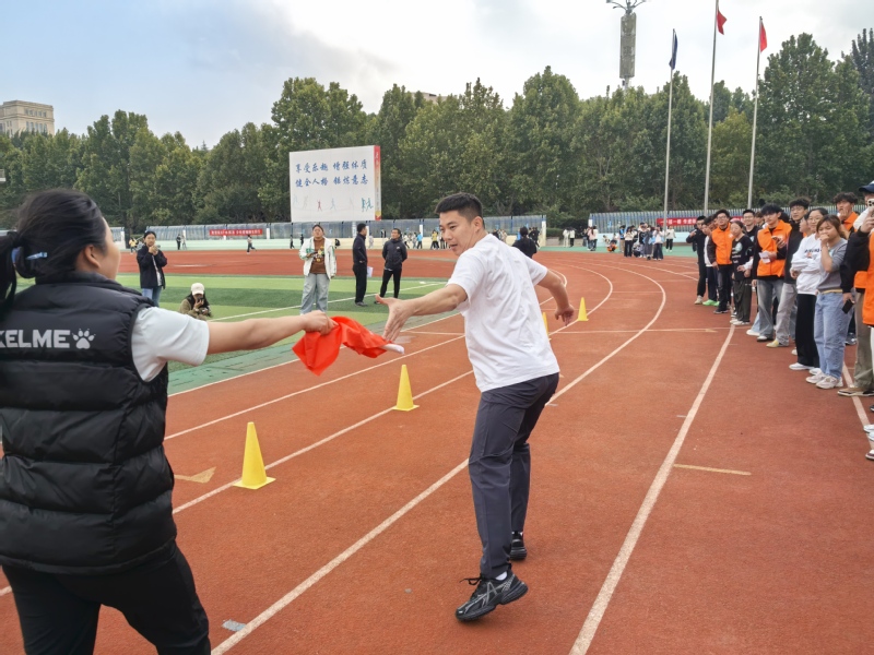 为庆祝学校建校74周年,丰富校园体育文化生活,增强师生凝聚力与向心力,传递“团结协作、拼搏进取”的体育精神。10月16日下午,“薪火相传,青春接力”潍坊学院2025年师生接力赛在学校田径场热力开赛。潍坊学院党委委员、副校长任立春、学生工作处处长曹兴波、学生工作处副处长葛红丽、体育学院党委书记孙创业、党委副书记兼副院长魏星及各年级辅导员出席本次活动。各院系师生代表组成参赛队伍,在赛道上共赴一场速度与激情的青春之约。