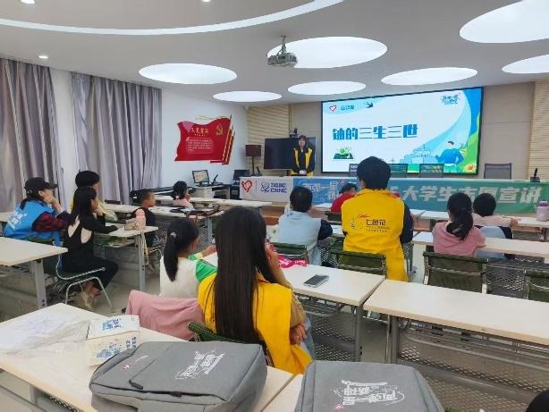 互动环节中,志愿者与社区居民展开热烈交流。社区居民分享了自己当年收听“两弹一星”成功发射新闻时的激动场景,引发阵阵共鸣;孩子们则围着志愿者提问“什么是原子弹”“科研工作者为什么不怕苦”,志愿者用通俗的语言一一解答,在青少年心中种下科学报国的种子。