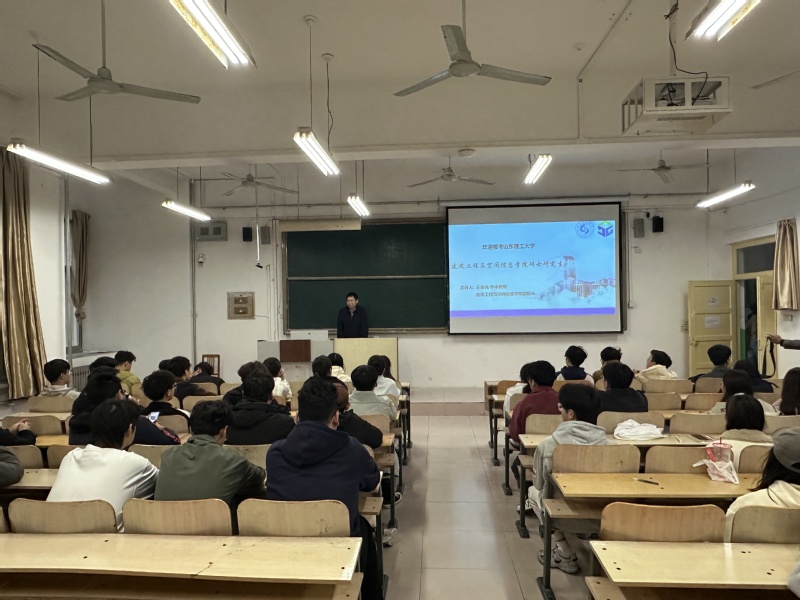 王院长从学院整体发展概况切入,全面且细致地介绍了山东理工大学建筑工程与空间信息学院的学科优势、师资力量、人才培养体系及研究生招生政策。通过展示学院近年来在绿色建筑技术研发、智慧城市空间信息构建、获奖成果及校企合作案例,让在场同学们直观感受到学科的深厚底蕴、前沿方向与发展潜力。他特别提到,学院始终秉持“产学研用深度融合” 的办学理念,已与省内外几十余家科研院所、知名建筑企业建立长期稳定的合作关系,不仅为研究生提供了涵盖课题研究、工程实践、实习就业的全链条资源支持,更凭借扎实的培养质量,使毕业生在建筑工程、空间信息、市政规划等相关行业内拥有极高的认可度与竞争力。