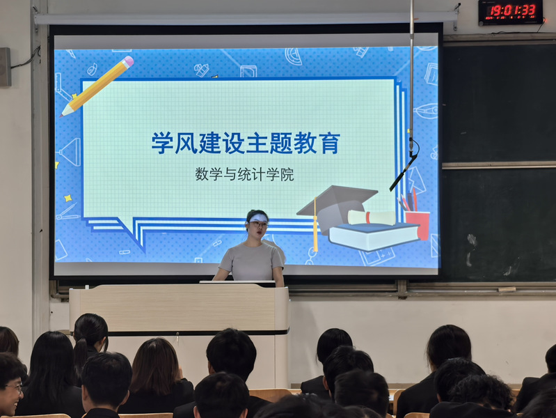 为扎实推进学风建设,引导新生尽快适应大学学习节奏,增强学习动力与信心,10月19日晚,数学与统计学院在8122教室举办2025级新生“学风建设主题教育”讲座。由辅导员郭怡萍主讲,2025级全体学生参加。