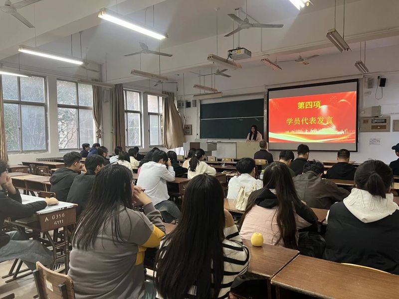 仪式伊始,全体师生肃立,齐唱国歌,在庄严的国歌声中,开班仪式正式拉开帷幕。随后,高连宏发表致辞并讲授党课。他从党的光辉历史、新时代党的使命任务以及青年学生在党建工作中的责任担当等方面展开,激励全体入党积极分子要坚定理想信念,加强理论学习,在学习和实践中锤炼党性,以实际行动向党组织靠拢。接着,庞文慧详细介绍了本次培训的课程安排、纪律要求及考核标准。她强调,参训学员要严格遵守培训纪律,认真参与每一次学习活动,确保培训取得实效。学生代表刘莉在发言中表示,作为入党积极分子,将珍惜本次培训机会,认真学习党的理论知识,不断提高自身政治素养,积极发挥模范带头作用,争取早日成为一名合格的中国共产党员。