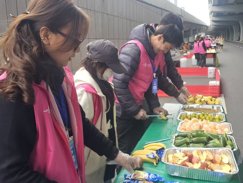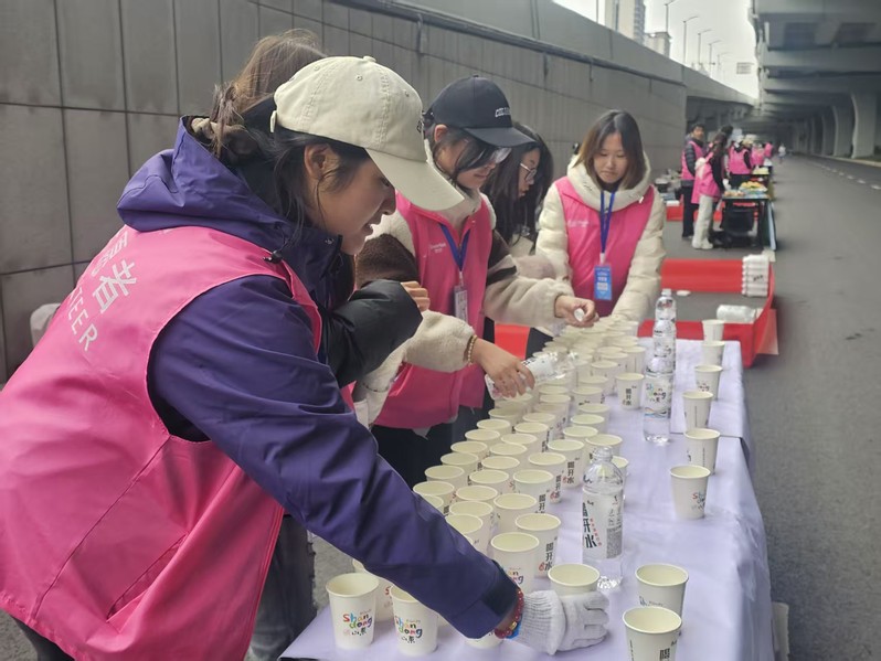 比赛当日,志愿者们早早到岗就位。起点区域,他们高举加油牌,用响亮口号为选手鼓劲,协助调整装备、舒缓紧张情绪;赛道沿线,紧盯选手状态,及时递送饮用水与能量补给,遇体力不支选手,第一时间联系医疗团队提供协助;终点处,有序引导完赛选手前往拉伸区,配合发放完赛奖牌与物资,用微笑缓解选手疲惫。