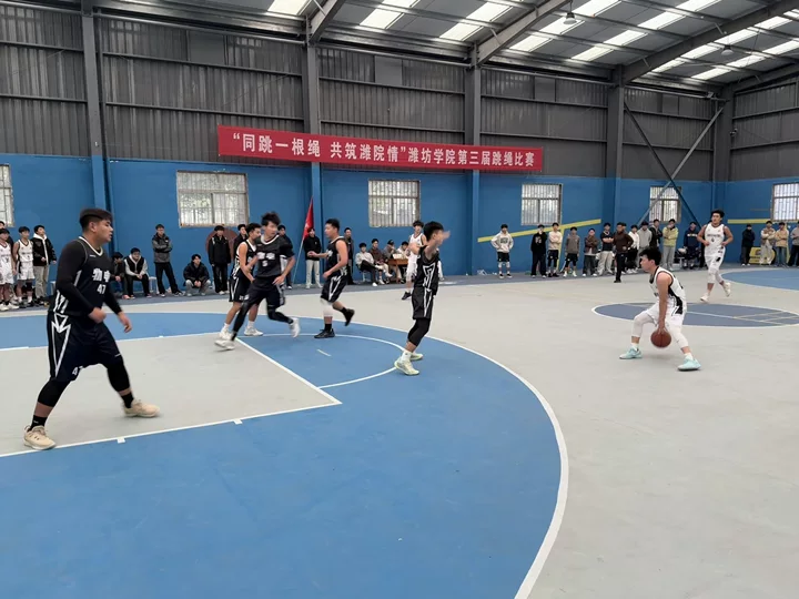 “金秋映球场,热血逐篮飞。”为丰富校园体育文化生活,深化各学院间的交流协作,充分彰显青年学子的竞技热情与拼搏精神,2025年10月19日, 2025年动感地带山东省大学生篮球联赛海选赛暨潍坊学院第二十五届大学生篮球赛最终决赛于学校篮球场热血开赛。我院篮球队和物理与电子信息学院篮球队强强对决,展开冠军的巅峰较量,更向着篮球联赛两连冠的荣誉发起冲击。