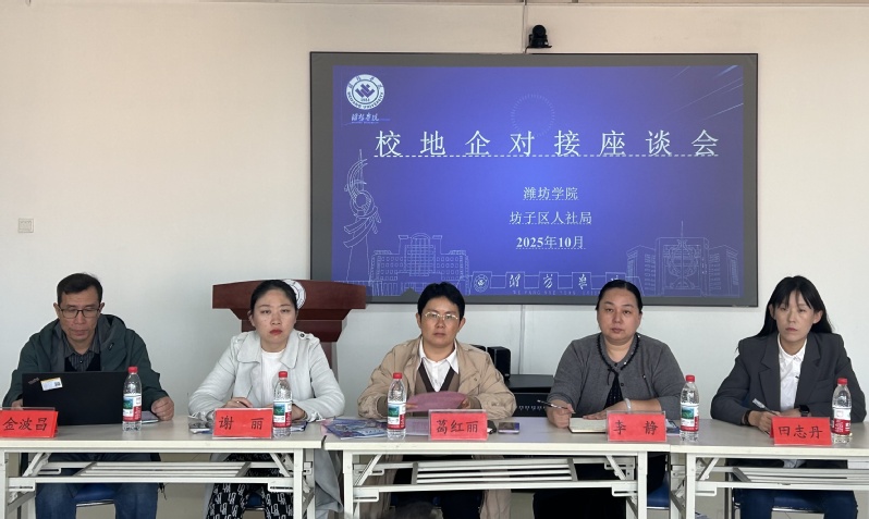 为推动政校企资源深度整合,实现人才培养与产业需求精准对接,近日,“坊子区与潍坊学院政校企座谈会”在大学生就业创业赋能中心多功能厅举行,坊子区人社局党组成员、区公共就业和人才服务中心主任陈志亮携区内7家重点企业代表参加座谈会。学生工作处副处长葛红丽、相关系部负责老师参加会议。
