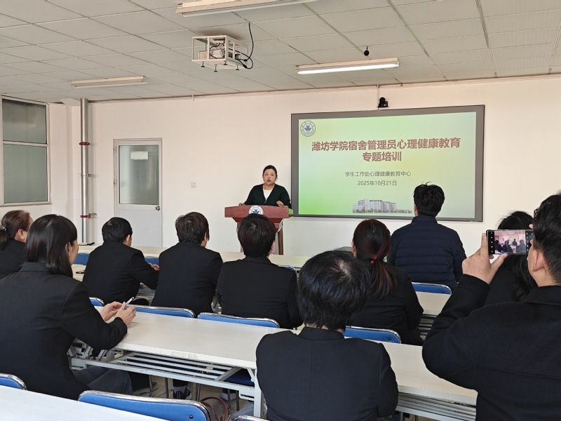 为进一步加强校园心理健康工作,提升宿舍管理员对学生心理问题的识别与干预能力,10月21日下午在创业孵化基地多功能厅举办宿舍管理员心理危机识别与干预专题培训。本次培训由专职心理老师苑莉授课,26名宿舍管理员参加学习。