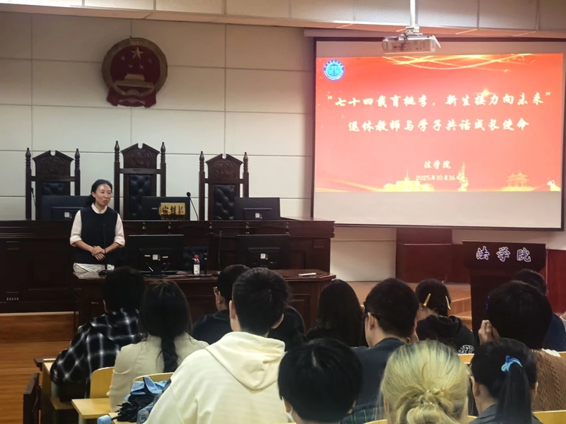 为充分发挥关工委退休老教师“传帮带”的育人力量,帮助2025级新生锚定成长航向、明晰大学目标,10月19日16时,法学院于8321模拟法庭举办“七十四载育桃李 新生接力向未来”主题分享会。法学院退休教师李大欣受邀主讲,法学院学工办主任宋薇及2025级部分新生参加活动。