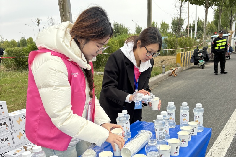 凌晨四点,外国语学院白鸽志愿者服务队便在主志愿服务区开启物资筹备战。他们高效完成饮用水、能量食品等物资的清点、分类与补给调度,每小时核查存量,为赛事筑牢“能量供给线”。