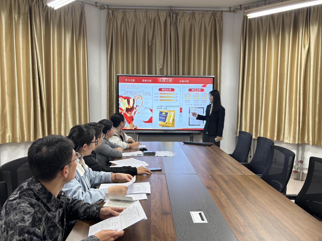 答辩现场,候选人依次登台,通过PPT展示、现场答辩等形式,从学业成绩、艺术实践、科研创新、志愿服务等多个维度全面展现个人风采。各位答辩人从容自信、侃侃而谈,将专业优势与综合素养展现得淋漓尽致。面对评委关于艺术道路规划、专业瓶颈突破等问题的追问,候选人思路清晰、应答流畅,展现出扎实的专业功底和良好的应变能力,为评委科学决策提供了充分依据。