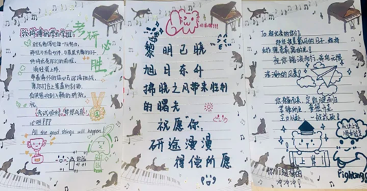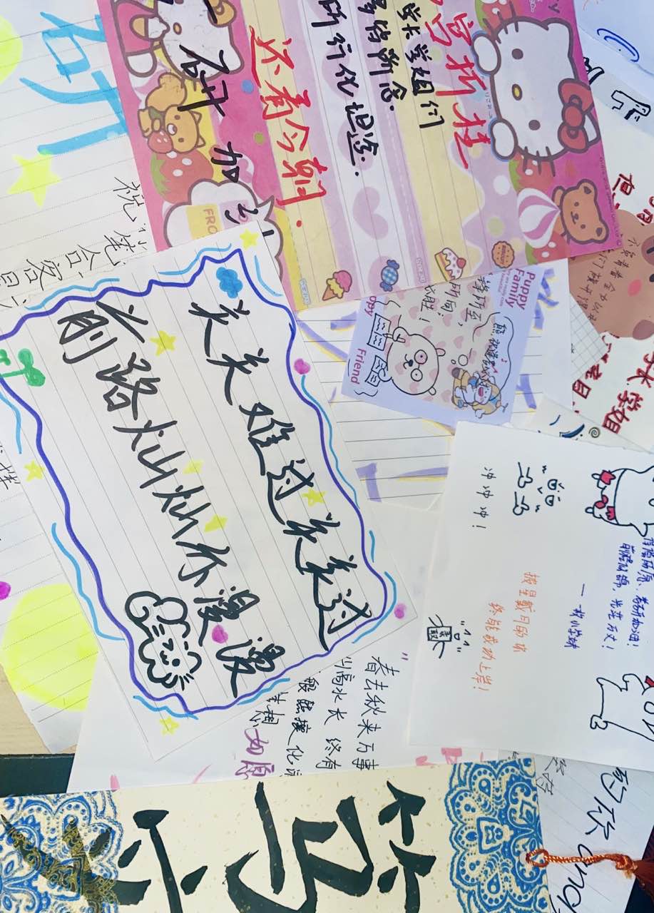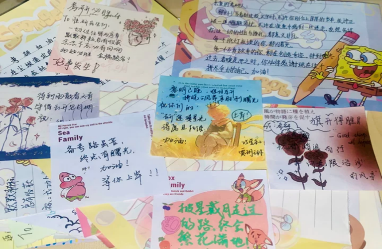 活动中,同学们在色彩各异的便签纸上认真写下心声。“每一个挑灯夜读的夜晚,都在为未来的坦途铺路”“你笔尖流淌的不仅是墨水,更是终将实现的梦想”“我们在身后为你鼓掌,等你凯旋”等,一句句真挚的祝福、一声声有力的加油,或俏皮可爱,或沉稳坚定,凝聚着同校学子间的牵挂与支持。这些便签成为校园里一道独特的“励志风景线”,每当学长学姐看到,疲惫的脸上总会露出笑容,备考的动力也随之倍增。