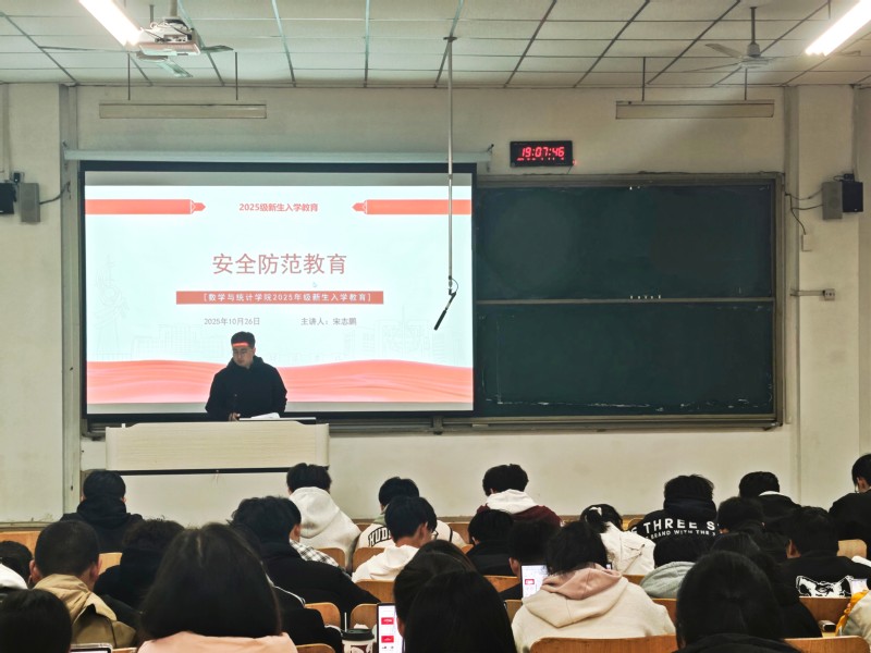 为全面提升2025级新生的安全防范意识与自我保护能力,10月26日,数学与统计学院在人合楼8122教室举办新生入学教育之安全防范专题讲座。团委副书记宋志鹏主讲,全体新生参与学习。