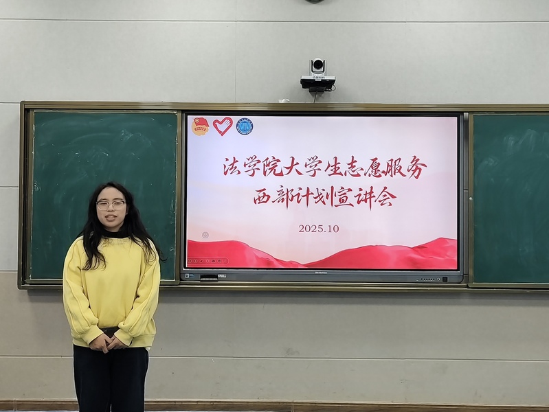 为进一步推动大学生志愿服务西部计划项目落地见效,引导法学院青年学子将青春理想融入祖国发展大局,在基层一线书写奋斗篇章,10月27日,法学院于人合楼8318教室举行大学生志愿服务西部计划宣讲会。本次活动特别邀请法学院西部计划在岗志愿者孙启彬、张艺雨、马秀梅通过线上连线方式分享实践感悟,法学院 2026 届毕业生踊跃参与。