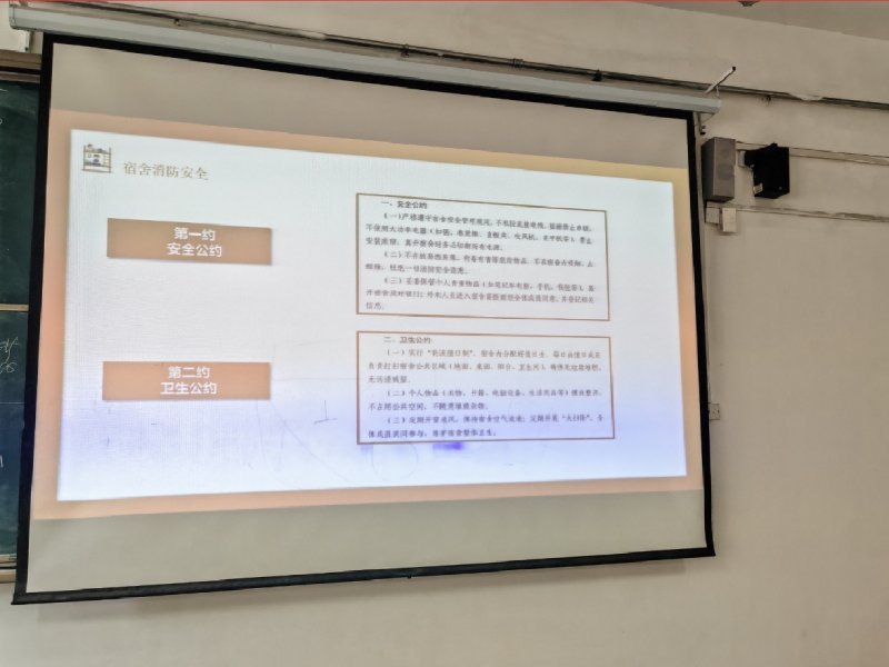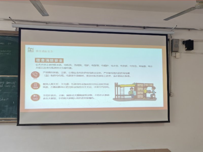 在宿舍卫生方面,建议宿舍值日实行"轮班制",每日打扫宿舍公共区域,确保无垃圾堆积、无污渍残留,保证宿舍卫生达标,打造良好的学习和休息环境;在宿舍消防方面重点强调,宿舍内严禁使用电锅、热水壶和卷发棒等大功率电器,禁止私拉乱接电线及串联插排,人走务必断电,明确禁止宿舍内出现烟与打火机,杜绝火灾事故的发生;在宿舍财务安全方面,提醒学生离开宿舍务必关门,不将贵重物品随意摆放。