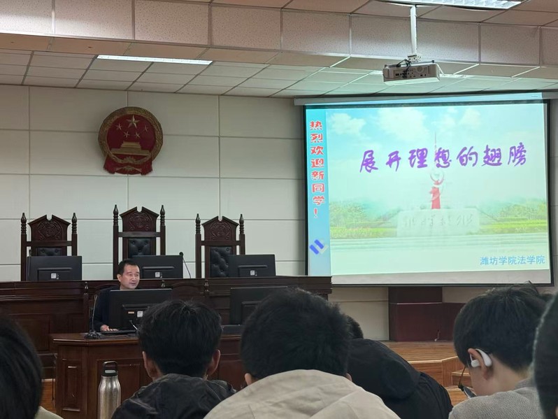 为明确专业学习方向,树立专业认知与职业理想,10 月 28 日下午,法学院在8321模拟法庭开展新生入学教育讲座。法学院院长杜立聪以“展开理想的翅膀”为题主讲,2025级全体同学参与。