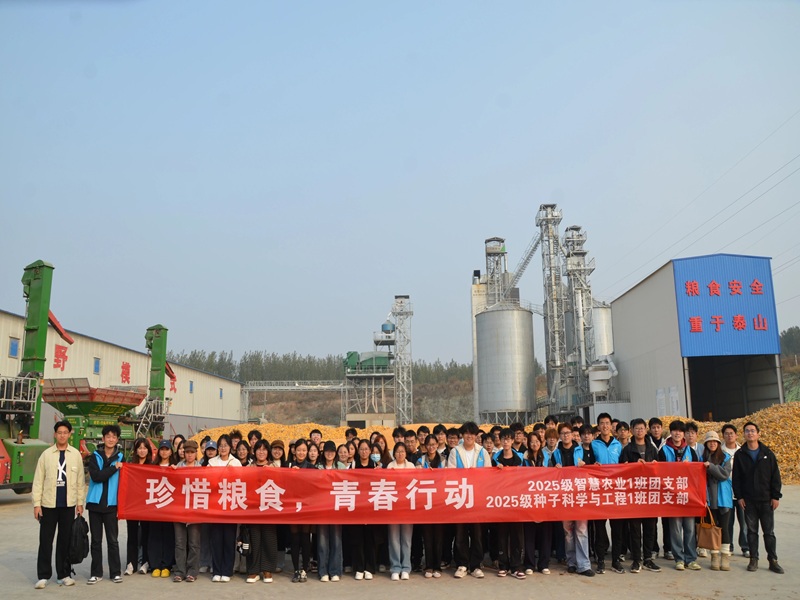 为引导学生深刻理解专业使命,增强节粮爱粮意识,10月30日,现代农学院2025级智慧农业1班团支部与2025级种子科学与工程1班团支部联合组织,前往潍城区潍坊绿野农机专业合作社,成功开展了一场别开生面的“珍惜粮食,青春行动”主题团日活动。本次活动将专业认知教育与劳动教育、国情教育深度融合,让同学们在粮食生产一线上了生动而深刻的一课。