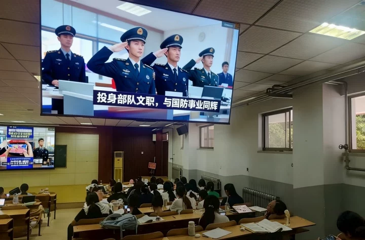 活动伊始,全体师生共同观看了2026年空军文职人员公开招考宣传片《逐梦空天》及直播介绍视频,在看到战机划破天际的瞬间,同学更加读懂了在“岁月静好”的背后有一群人在云端坚守的深刻内涵。硬核装备与热血信仰的碰撞,是空军写给家国的安全感答卷。