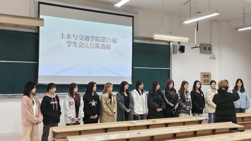 礼仪不仅是个人素养的体现,更是学院形象的窗口。为选拔具备良好仪态与综合素质的礼仪队员,土木与交通学院礼仪队于10月31日在致远楼6102教室举行纳新活动,王梓煜作为礼仪队代表为参选人员进行培训。