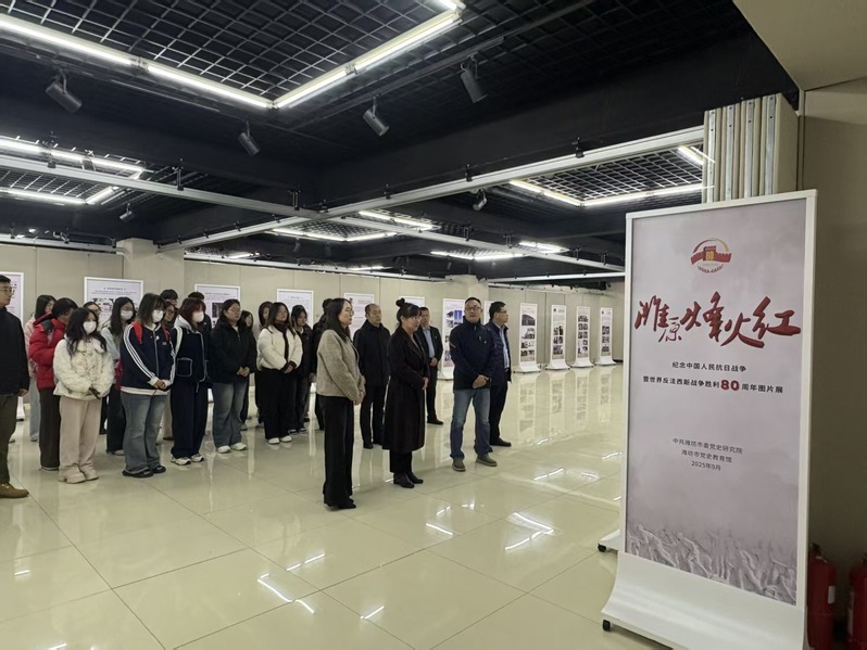 为深入推进爱国主义教育走深走实,大力弘扬伟大抗战精神,11月3日上午,数学与统计学院师生前往学校美术馆参观“潍原烽火红”纪念中国人民抗日战争暨世界反法西斯战争胜利80周年图片展。理论学习中心组成员、科室负责人以及部分教师、学生党员、入党积极分子参加此次活动,在历史影像中汲取精神力量,筑牢理想信念根基。