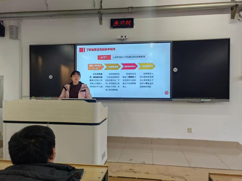 计算机工程学院学生第一党支部书记陈燕玲以“程序严规范,入党有遵循”为切入点,为入党积极分子们详细解读了发展党员工作的基本流程。她明确指出,了解并熟悉入党程序对于每一位入党积极分子而言,是迈向党组织的第一步,也是检验自身态度是否端正、准备是否充分的试金石。她强调,从递交入党申请书到确定为入党积极分子,从培养教育到政治审查,从预备党员的接收至最终转正,每一个环节都体现了党组织的严肃性与规范性。每个入党积极分子都应当以严谨认真的态度对待程序要求,学习掌握程序是前提,自觉遵循程序是核心,最终通过程序考验、加入党组织是方向。