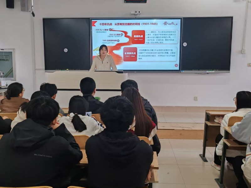 张爽老师为入党积极分子们梳理了中国十四年抗战从苦难到觉醒的历史脉络。她指出,学习这段历史是一次深刻的精神洗礼,全体中华儿女在艰苦卓绝的斗争中展现了万众一心、共赴国难的伟大精神。她引导大家要从历史中汲取力量,坚定信仰,并将这种精神转化为刻苦学习、提高本领的实际行动,同时注重发扬集体主义,为实现民族复兴贡献力量。